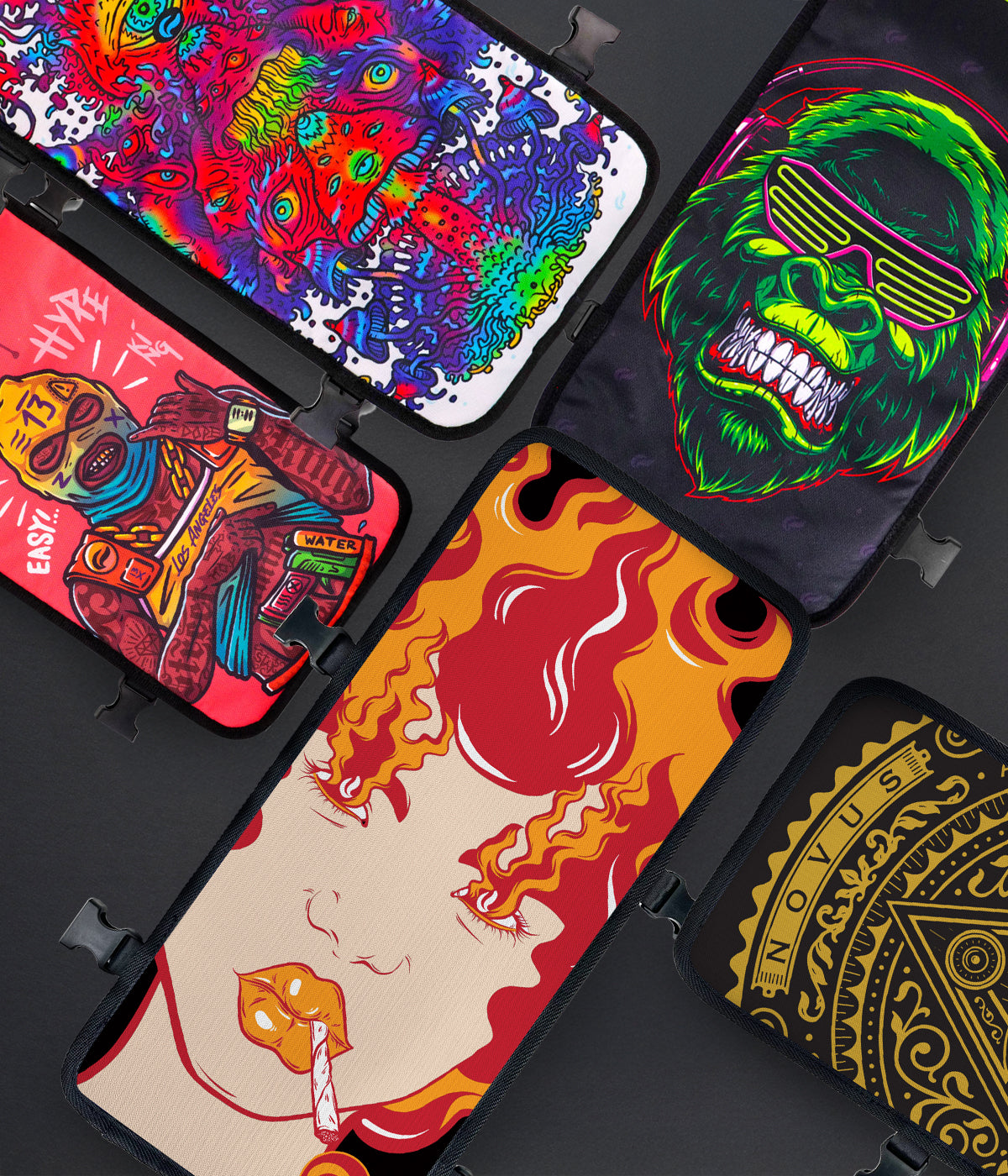 Each Faceoff® face cover securely attaches to your bag with Velcro and clips. Additional face covers are available for unique, personalized designs.