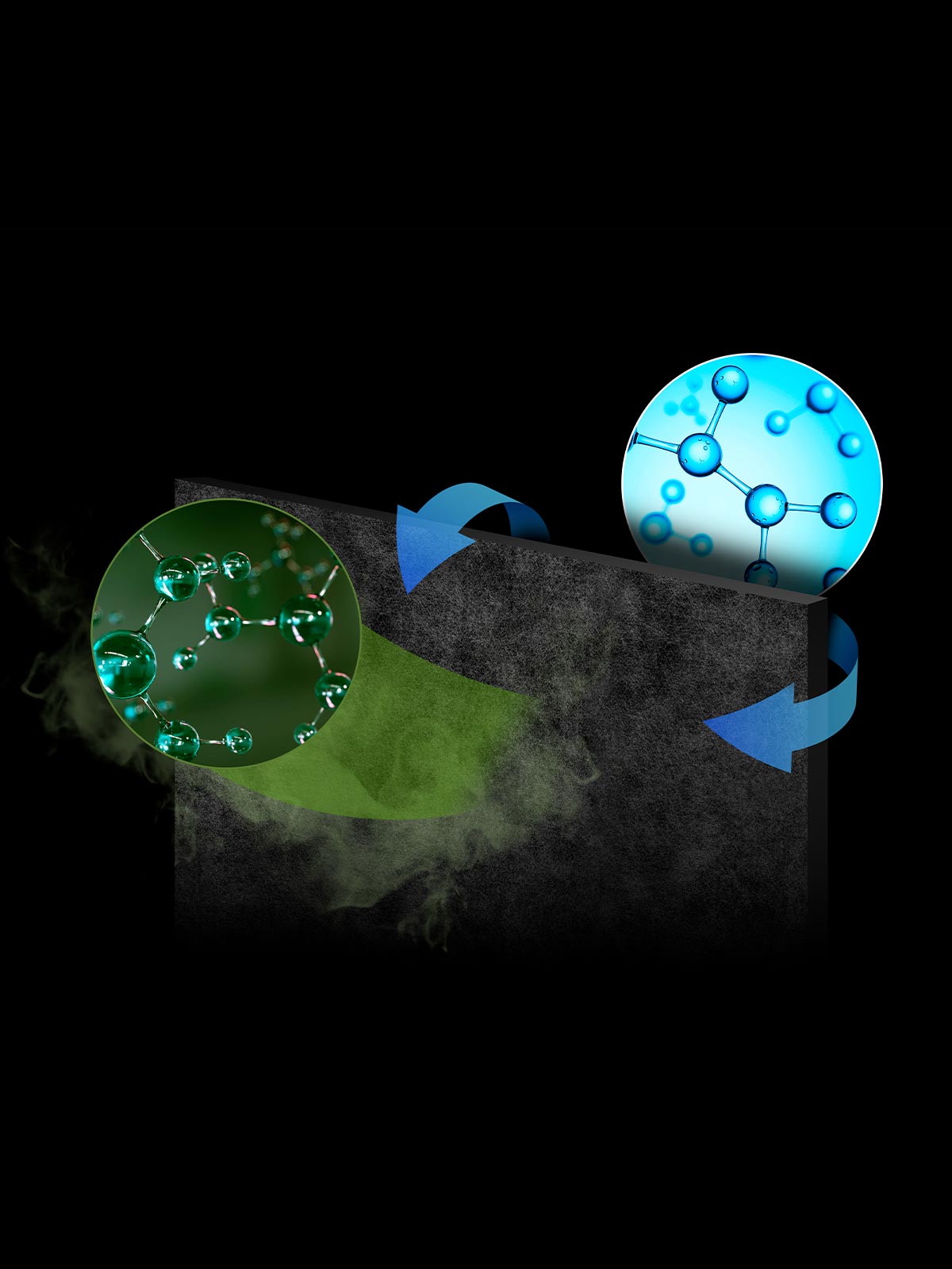 When the odor molecules come into contact with the activated carbon, they are trapped within the pores, where it is trapped and neutralized. Absorption capacity and efficiency depends on the product and care, but usually will last for 6 to 9 months, after which it can be easily Re-Activated.
